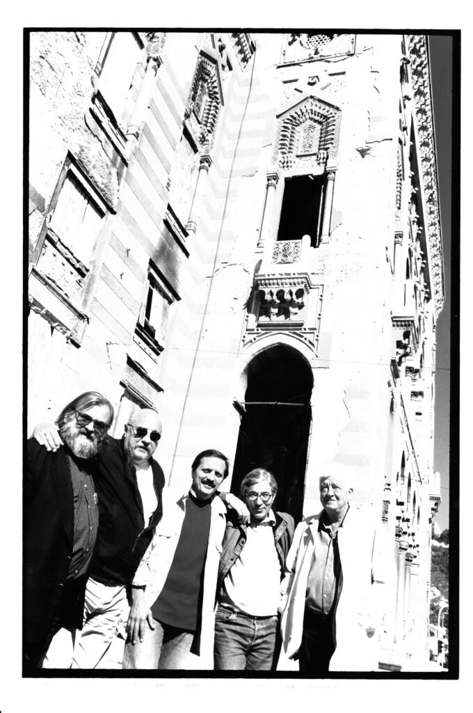 2003 : Boualem Sansal est démis de toutes ses fonctions administratives en Algérie, mais continue d’occuper sa maison de Boumerdès. Sa carrière littéraire se prolonge chez Gallimard, où il est suivi par l’auteur et éditeur Jean-Marie Laclavetine (à sa gauche, sur la photo ci-contre, prise à Sarajevo, en 2000) : parution consécutive de Harraga, Le Village de l’Allemand, Rue Darwin….